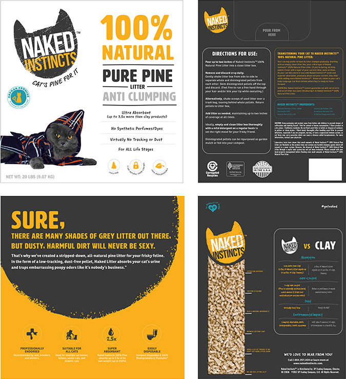 "Sure, there are many shades of grey litter to choose from, but dusty, harmful dirt will never be sexy. That’s why we’ve created a stripped-down, all-natural pine litter for your frisky feline: Naked Litter. In the form of a low-tracking, lightweight pellet, Naked Litter absorbs your cat’s urine and traps embarrassing poopy odors like it’s nobody’s business. Chemical and dust-free with a natural wood color and scent, your cat will actually start to dig their 'me time.' And you’ll dig that Naked Litter is compostable and sustainable, so it’s just right for your cat and the environment."